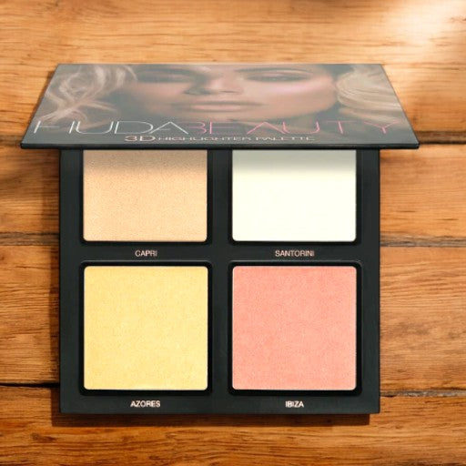 Huda Beauty 3D Highlighter Palatte Pink SandPairing a powdered highlighter with a face oil creates a seamless highlight. Huda Beauty's 3D highlighter palette for fair-to medium skin tones houses two types of highlighters. One is cream based, and the other three are powder based. It carries a pink sand color...