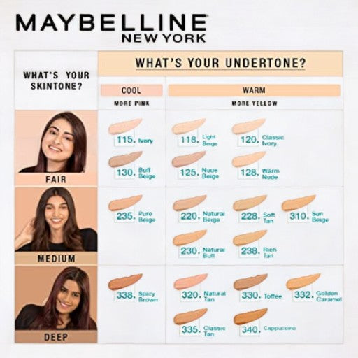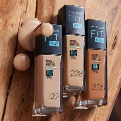 MAYBELLINE New York FIT ME Matte + Poreless FoundationFit Me® Matte + Pore less Foundation face makeup. Mattifies, refines pores and leaves a natural, seamless finish. Same natural weightless matte texture, now improved with SPF 22. Mattifying liquid formula ideal for normal to oily skin Formulated with clay minerals: controls shine &...