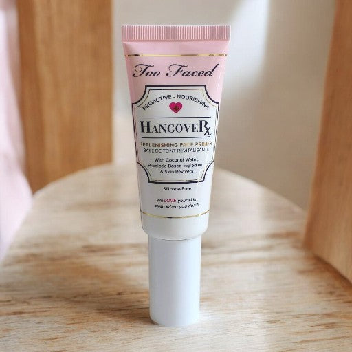 TOO FACED HangOverx Replenishing Face PrimerBuild your base Designed to hydrate and boost skin's radiance Promotes skin's elasticity Soothes and smooths the skin for a refreshing finish Wear under foundation for prolonged make-up wear Wear alone as a brightening protective shield Infused with hydrating coconut water Product is non-returnable...