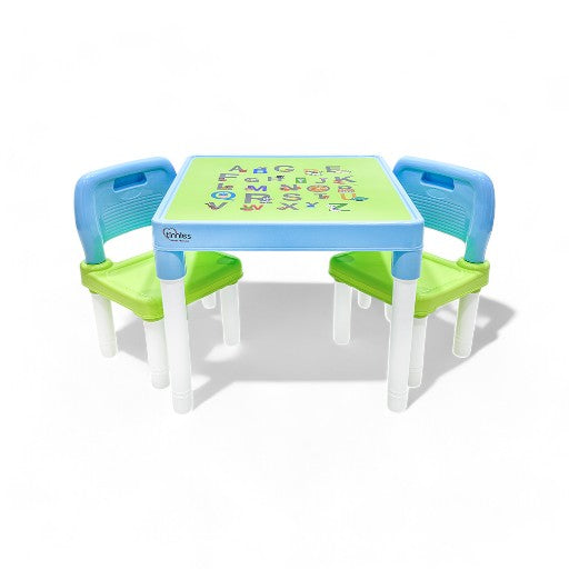 Tinnies Baby Children Study Table Set T1104 BlueA comfortable kids’ table set to cultivate a fine posture!Quick & easy to set up or takedownIntriguing alphabetical sticker for kiddiesPortable, lightweight design for compact storageCan be used as a craft table, snack table, or game tableIncludes a table and two chairs Additional Details...