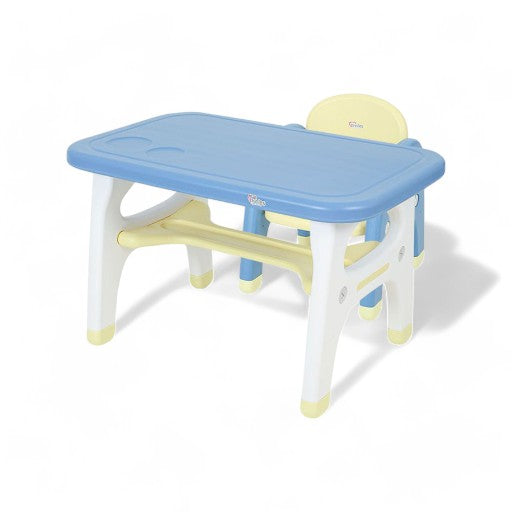 Tinnies Children Study Table Set T1101 Blue-YellowA comfortable experience to cultivate a fine posture!Quick & easy to set up or takedownPortable, lightweight design for compact storageCan be used as a craft table, snack table, or game tableIncludes a table and one chairProvides a comfortable experience to cultivate a fine posture...