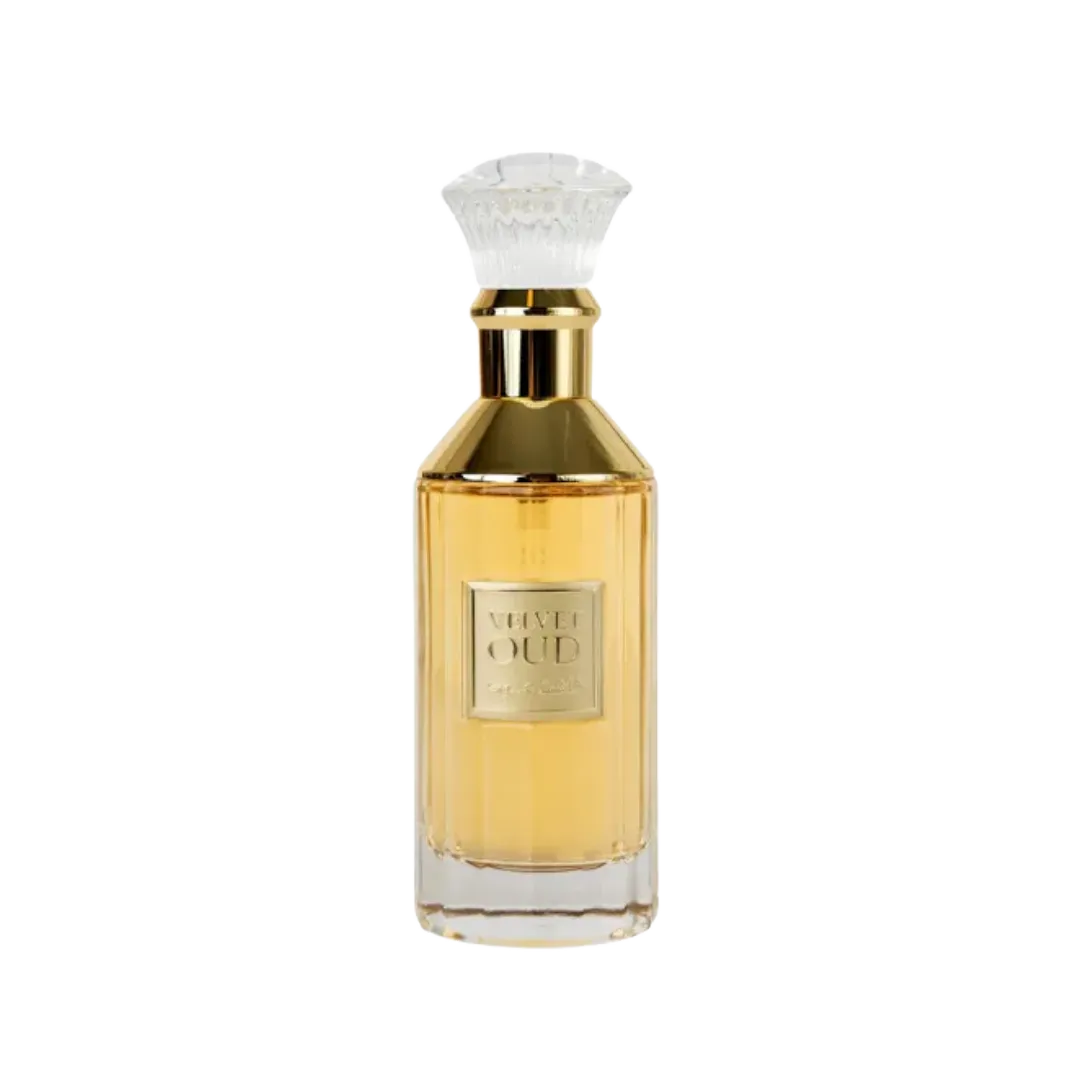 Perfume Velvet Oud Eau de Parfum by Lattafa Perfumes is a velvety perfume with incense, noble Oudh, golden amber and sensual musk.